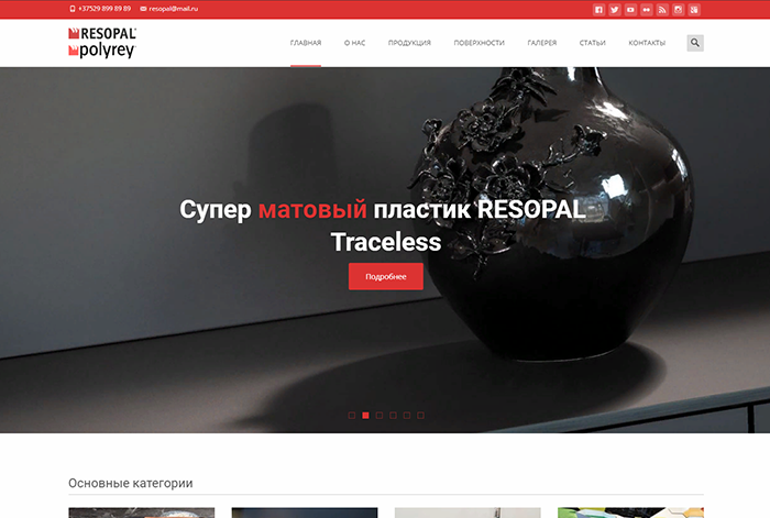 Сайт-каталог ЧП Каплинский Импорт-Экспорт, поставщика пластиковых столешниц RESOPAL и POLYREY