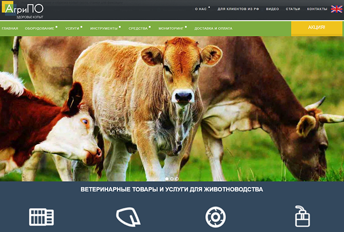 Сайт-каталог ООО АгриПО, компания занимается вопросами здоровья копыт у крупного рогатого скота